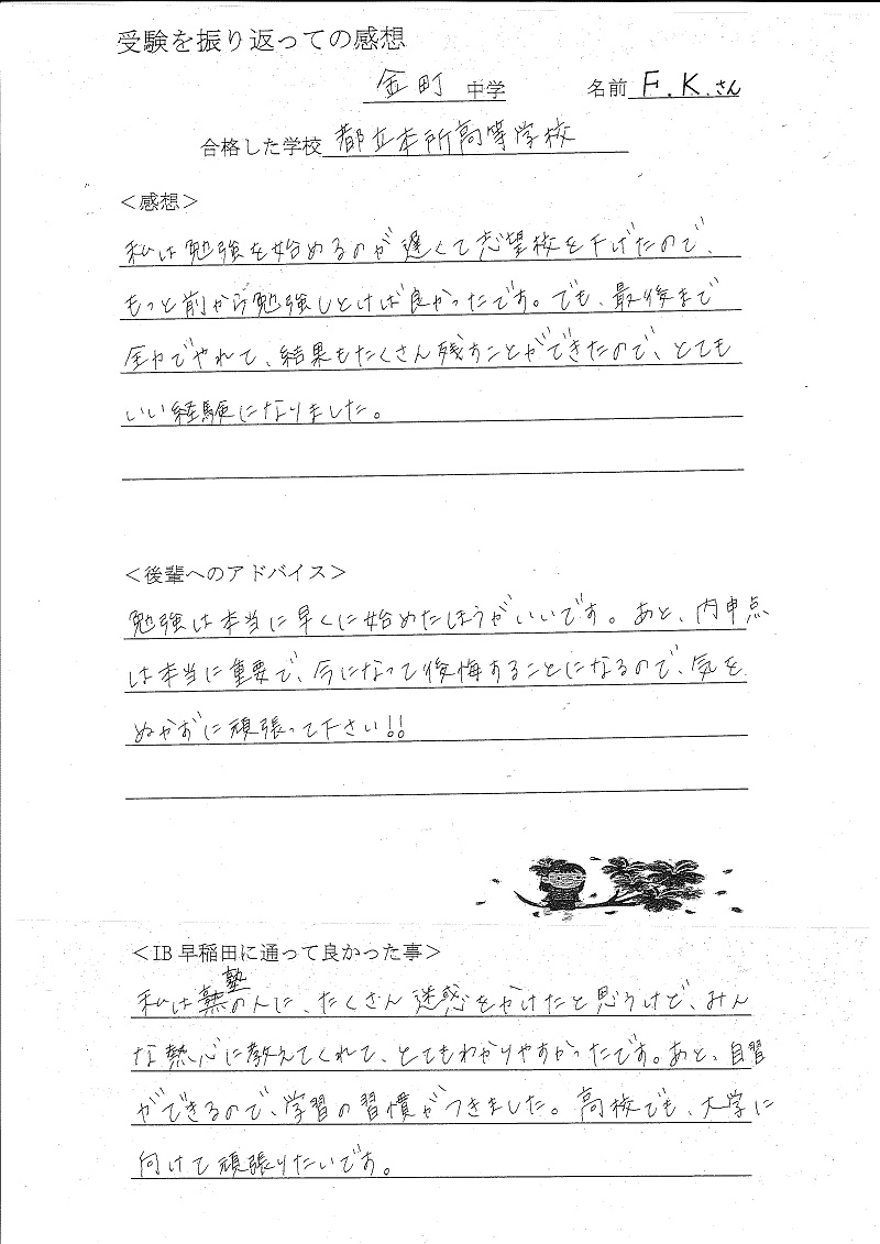 金町中学3年 F.Kさん