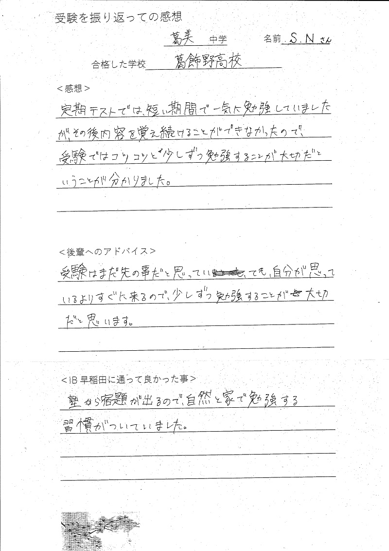 葛美中学3年 S.Nさん