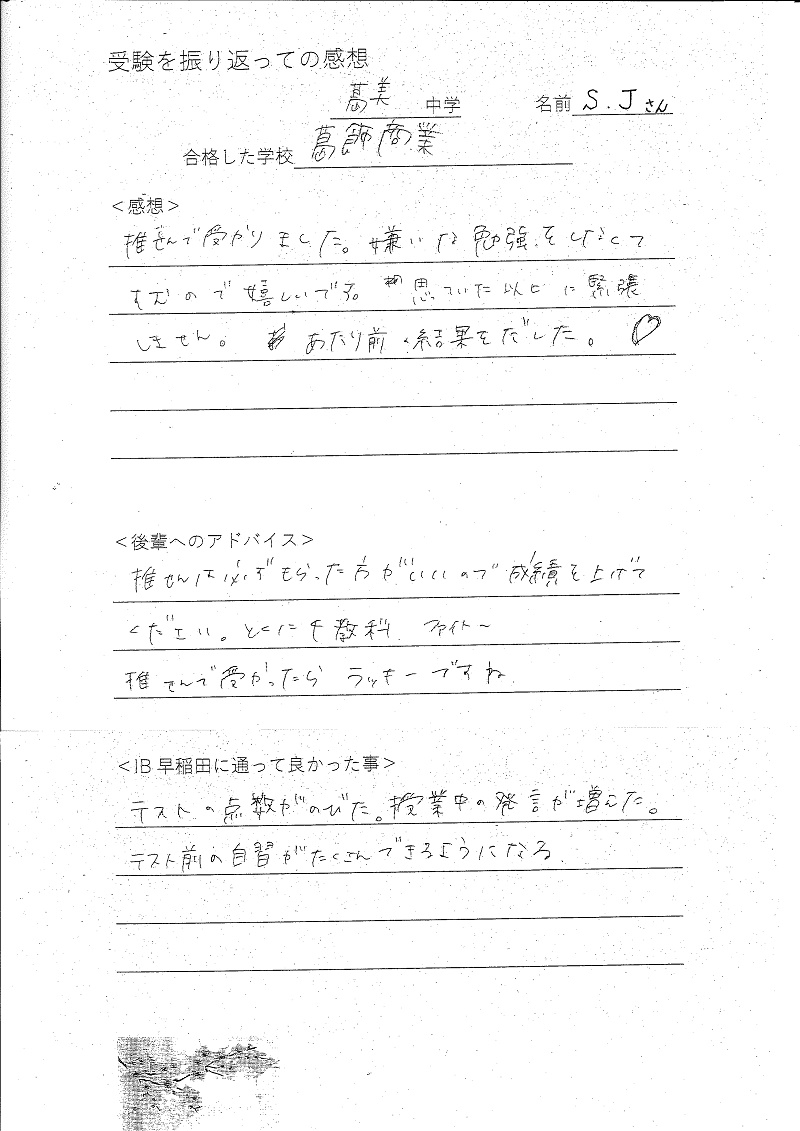 金町中学3年 I.Sさん